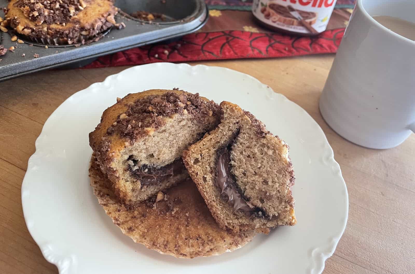 If you are inspired by the concept of filling a muffin with hazelnut spread, consider making my Brown Butter Banana Nut Muffins filled with Nutella. And if you like the idea of using browned butter as much as I do, try my Brown Butter Pumpkin Maple Muffins with Pepita Streusel or my favorite Brown Butter Toffee Apple Muffins