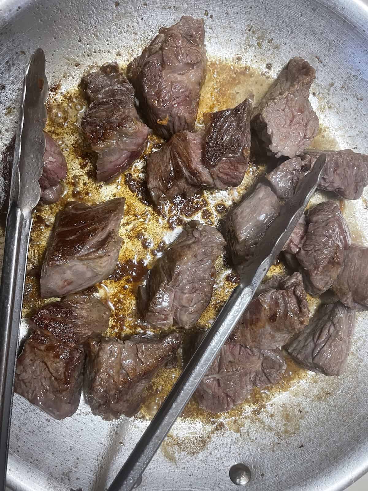 Brown the meat until it is golden brown on all sides.