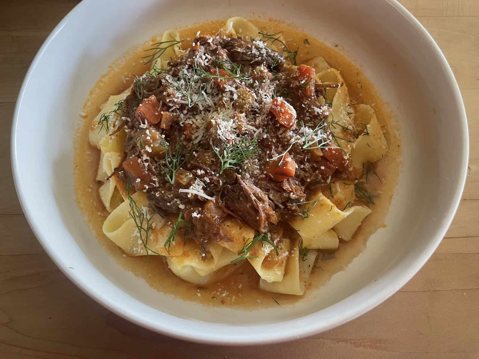 - Serve short ragu over pasta and top with parmesan cheese and reserved fennel fronds.
